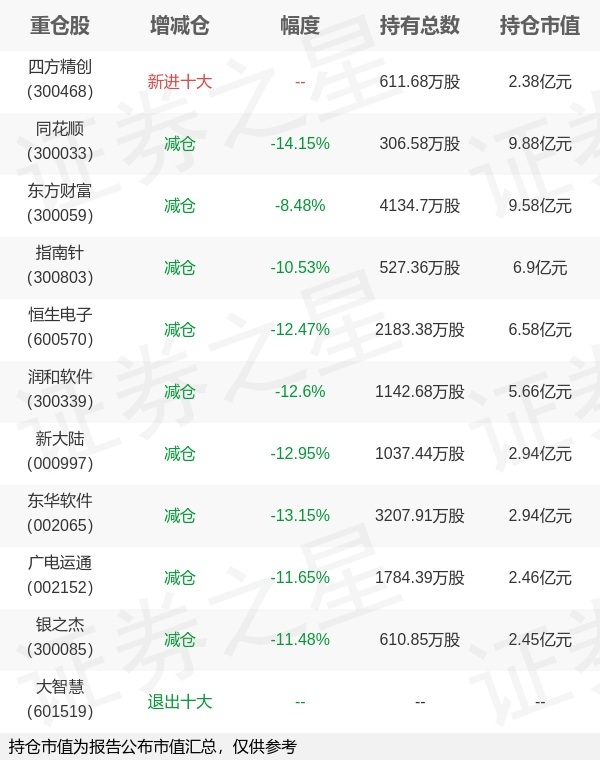 证券之星消息,1月22日华宝基金旗下陈建华 曹旭辰管理的华宝中证金融科技主题交易型开放式指数基金公布年报,近1年净值增长率26.43%。与上一季度相比,该基金前十大重仓股新增四方精创;其中同花顺持仓占比9.8%,为该基金第一大重仓股;大智慧等退出前十大重仓股;详细数据如下: