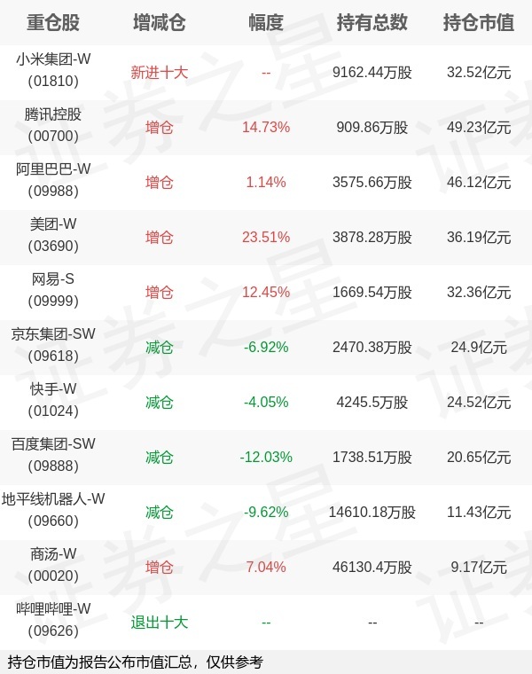 证券之星消息,1月22日华夏基金旗下徐猛管理的华夏恒生互联网科技业交易型开放式指数基金(QDII)公布年报,近1年净值增长率28.28%。与上一季度相比,该基金前十大重仓股新增小米集团-W;并对腾讯控股增仓116.81万股,为该基金第一大重仓股;哔哩哔哩-W等退出前十大重仓股;详细数据如下: