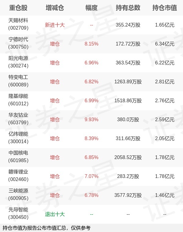 证券之星消息,1月22日南方基金旗下龚涛管理的南方中证新能源交易型开放式指数基金公布年报,近1年净值增长率58.94%。与上一季度相比,该基金前十大重仓股新增天赐材料;并对宁德时代增仓13.02万股,为该基金第一大重仓股;先导智能等退出前十大重仓股;详细数据如下: