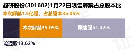 证券之星消息,根据市场公开信息整理,超研股份(301602)于1月22日将有1.5亿股限售股份解禁,为公司首发原股东限售股份,首发战略配售股份,占公司总股本35.05%。(本次数据根据历史公告整理得出,实际情况以上市公司最新公告为准)最近一年内,该股累计解禁357.75万股,占总股本的0.84%。本次解禁后,公司还有2.2亿股限售股份,占总股本51.32%。具体如下图所示: