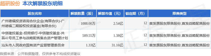 本次解禁涉及股东明细见下表: