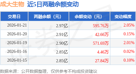 证券之星消息,1月21日,成大生物(688739)融资买入990.32万元,融资偿还394.83万元,融资净买入595.49万元,融资余额2.96亿元,近3个交易日已连续净买入累计1201.06万元,近20个交易日中有14个交易日出现融资净买入。