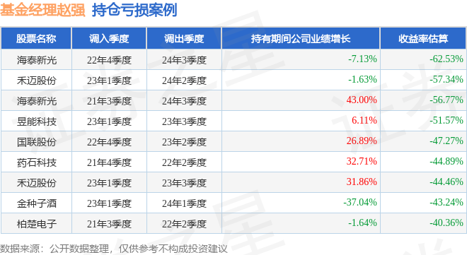 赵强管理的新华安享多裕定开混合基金在22年4季度买入海泰新光,在持有1年又3个季度后在24年3季度卖出。持有期间的估算收益率为-62.53%,持有期间海泰新光在2022年到2024年的年报营业总收入降幅为7.13%。