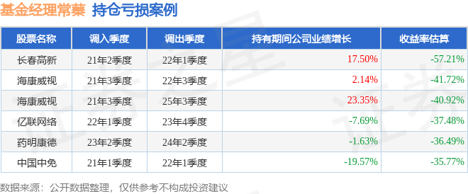 常蓁管理的嘉实品质回报混合基金在21年2季度买入长春高新,在持有3个季度后在22年1季度卖出。持有期间的估算收益率为-57.21%,持有期间长春高新在2021年到2022年的年报营业总收入增幅达17.5%。