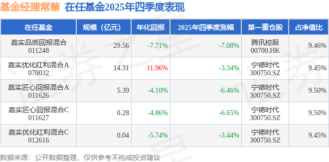 证券之星消息,截止2025年四季度末,基金经理常蓁旗下共管理5只基金,本季度表现最佳的为嘉实优化红利混合A(070032),季度净值跌3.34%。