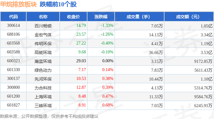 从资金流向上来看,当日甲烷排放板块主力资金净流入1.04亿元,游资资金净流出6943.34万元,散户资金净流出3426.33万元。甲烷排放板块个股资金流向见下表:
