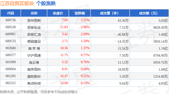 从资金流向上来看,当日江苏自贸区板块主力资金净流入4962.34万元,游资资金净流出1789.91万元,散户资金净流出3172.43万元。江苏自贸区板块个股资金流向见下表: