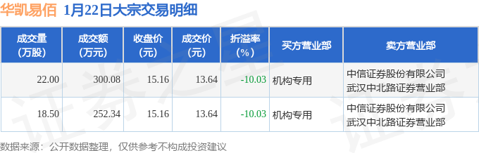 证券之星消息,1月22日华凯易佰发生大宗交易,交易数据如下: