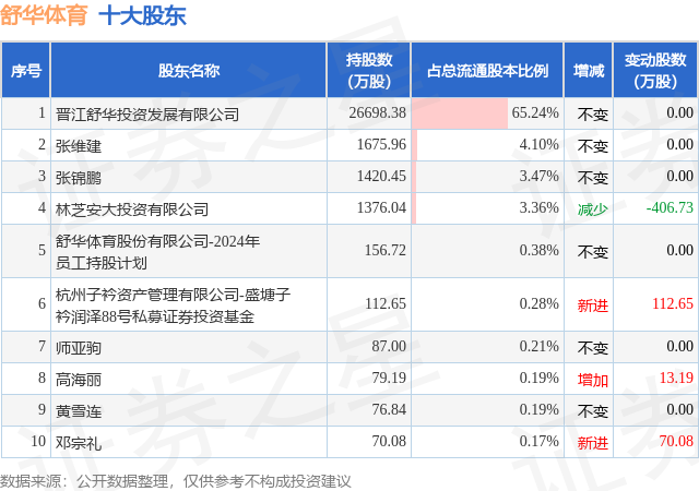 根据舒华体育2025年三季报公布的十大股东详情如下: