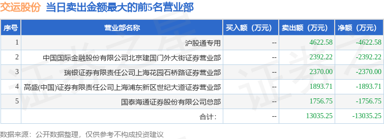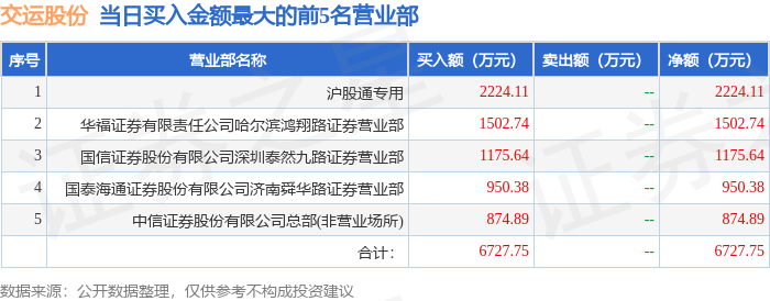 证券之星消息,沪深交易所2026年1月22日公布的交易公开信息显示,交运股份(600676)因有价格涨跌幅限制的日收盘价格跌幅偏离值达到7%的前五只证券登上龙虎榜。此次是近5个交易日内第1次上榜。