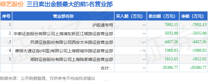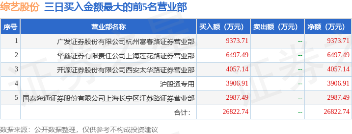 证券之星消息,沪深交易所2026年1月22日公布的交易公开信息显示,综艺股份(600770)因非ST、*ST和S证券连续三个交易日内收盘价格涨幅偏离值累计达到20%的证券登上龙虎榜。此次是近5个交易日内第1次上榜。