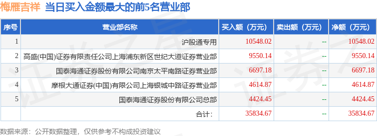 证券小知识:龙虎榜是交易所披露的竞价交易公开信息,现身龙虎榜的个股都是当日最为活跃的个股,是投资者日常重点关注的数据。交易所公布当日买入金额和卖出金额前五名的席位,其中一些席位代表特殊意义,如机构专用席位是指基金专用席位、券商自营专用席位、社保专用席位、券商理财专用席位、保险机构专用席位、保险机构租用席位、QFII专用席位等机构投资者买卖证券的专用通道和席位。深股通专用、沪股通专用为北向资金的交易席位。从龙虎榜数据可以发现和研究机构、游资和散户的资金动向。一些营业部席位经常上榜,市场知名度较高,投资者整理代表散户、游资、量化等不同资金的营业部席位。
