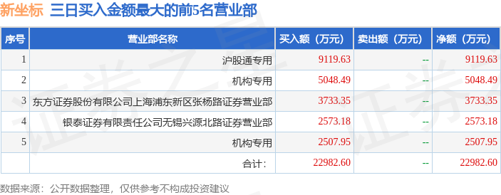 证券之星消息,沪深交易所2026年1月22日公布的交易公开信息显示,新坐标(603040)因非ST、*ST和S证券连续三个交易日内收盘价格涨幅偏离值累计达到20%的证券登上龙虎榜。此次是近5个交易日内第1次上榜。