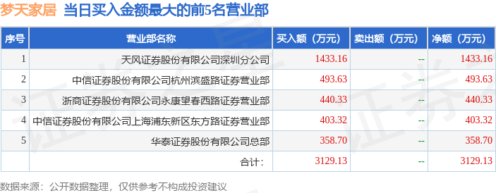 证券之星消息,沪深交易所2026年1月22日公布的交易公开信息显示,梦天家居(603216)因有价格涨跌幅限制的日收盘价格跌幅偏离值达到7%的前五只证券登上龙虎榜。此次是近5个交易日内第1次上榜。