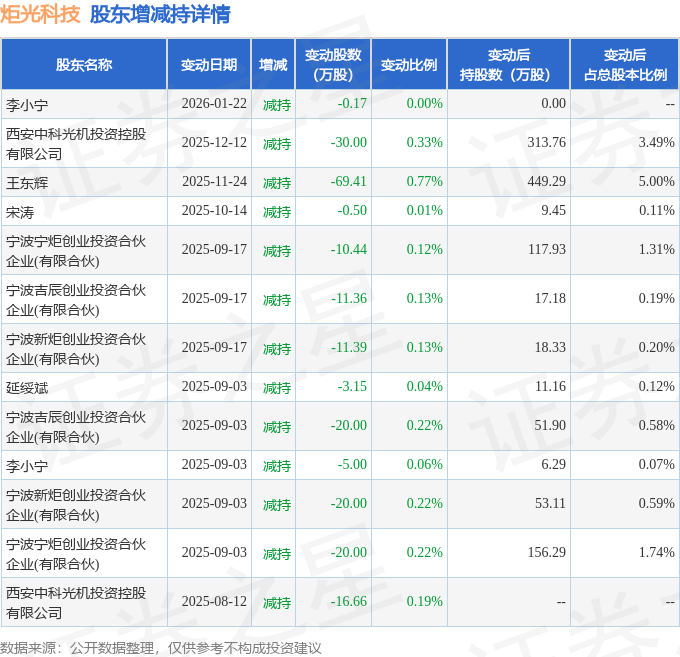 该股近半年内有股东持股变动,合计净减持218.08万股,股东增减持明细如下表: