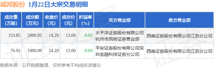 证券之星消息,1月22日诚邦股份发生大宗交易,交易数据如下: