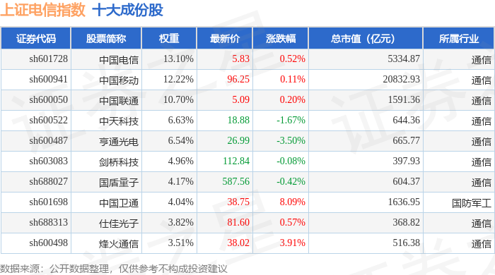 资金流向方面,上证电信(000040)指数成份股当日主力资金净流出合计4.17亿元,游资资金净流入合计5.8亿元,散户资金净流出合计1.63亿元。成份股资金流向详情见下表:
