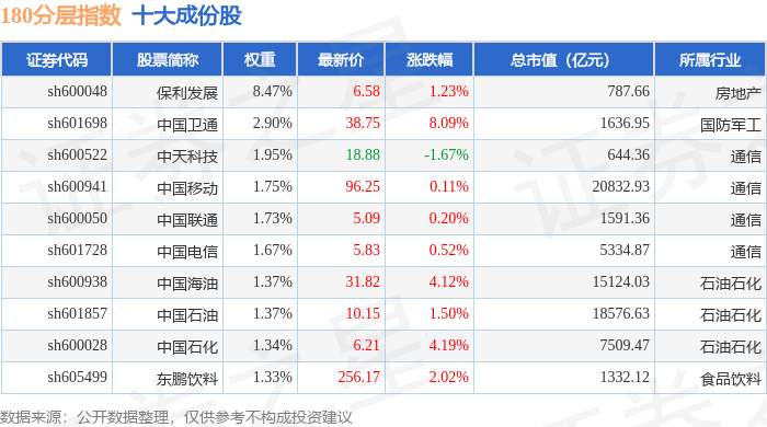 180分层(000093)指数十大成份股详情如下: