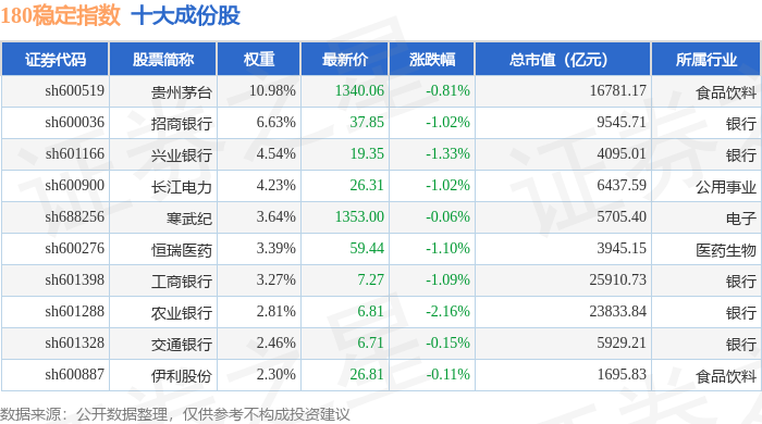 证券之星消息,1月22日,180稳定(000125)指数报收于11565.46点,跌0.12%,成交1263.65亿元,换手率0.42%。当日该指数成份股中,上涨的有45家,龙芯中科以8.81%的涨幅领涨,下跌的有41家,恒立液压以2.5%的跌幅领跌。