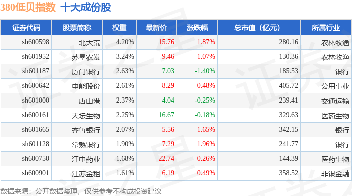 380低贝(000138)指数十大成份股详情如下: