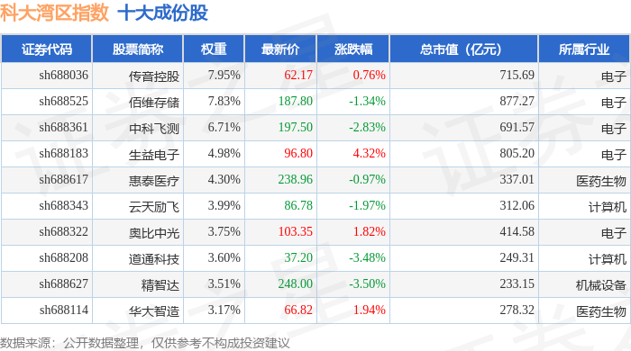 科大湾区(000697)指数十大成份股详情如下:
