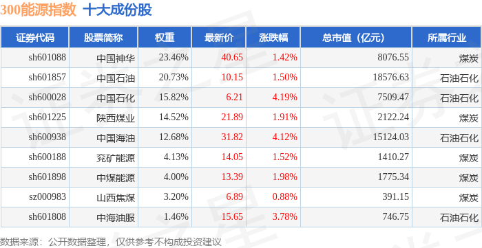 300能源(000908)指数十大成份股详情如下:
