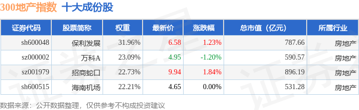 300地产(000952)指数十大成份股详情如下: