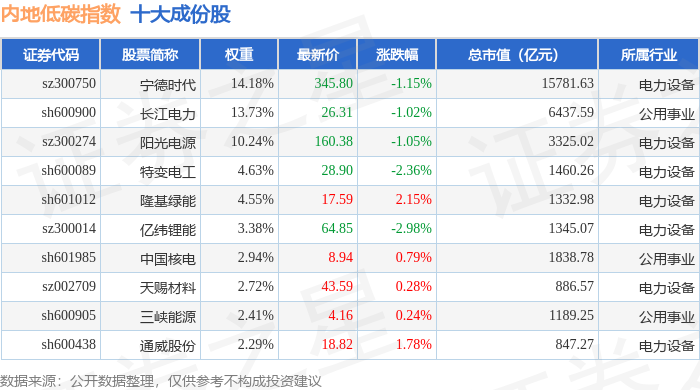 内地低碳(000977)指数十大成份股详情如下: