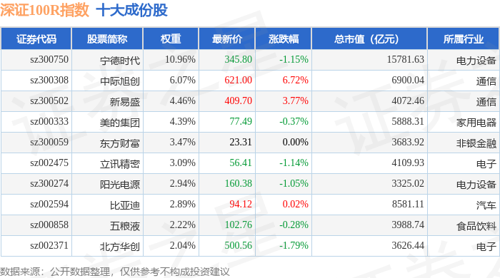资金流向方面,深证100R(399004)指数成份股当日主力资金净流出合计23.26亿元,游资资金净流出合计51.38亿元,散户资金净流入合计74.64亿元。成份股资金流向详情见下表: