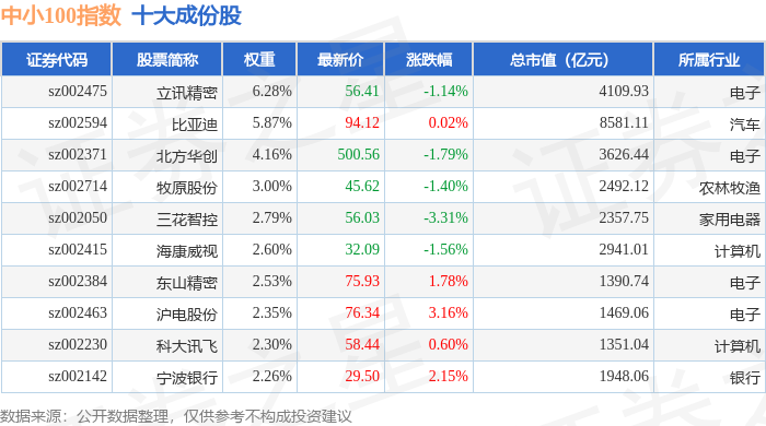 证券之星消息,1月22日,中小100(399005)指数报收于8822.34点,涨0.17%,成交1912.06亿元,换手率2.28%。当日该指数成份股中,上涨的有56家,鹏鼎控股以10.0%的涨幅领涨,下跌的有44家,信立泰以4.17%的跌幅领跌。