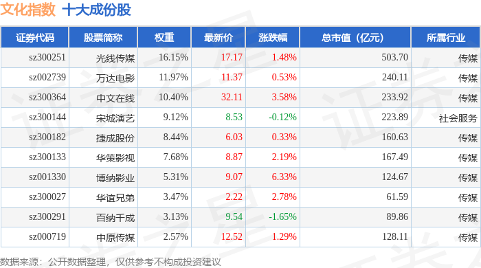 资金流向方面,文化指数(399248)成份股当日主力资金净流入合计5.47亿元,游资资金净流入合计2655.79万元,散户资金净流出合计5.73亿元。成份股资金流向详情见下表: