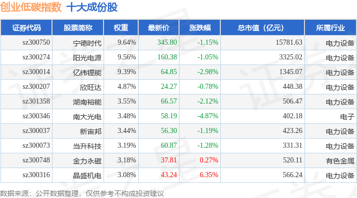 资金流向方面,创业低碳(399259)指数成份股当日主力资金净流出合计37.18亿元,游资资金净流入合计7.43亿元,散户资金净流入合计29.75亿元。成份股资金流向详情见下表: