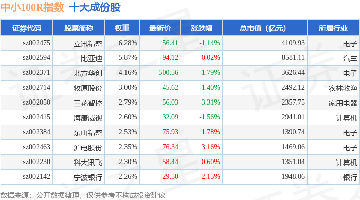 中小100R(399333)指数十大成份股详情如下: