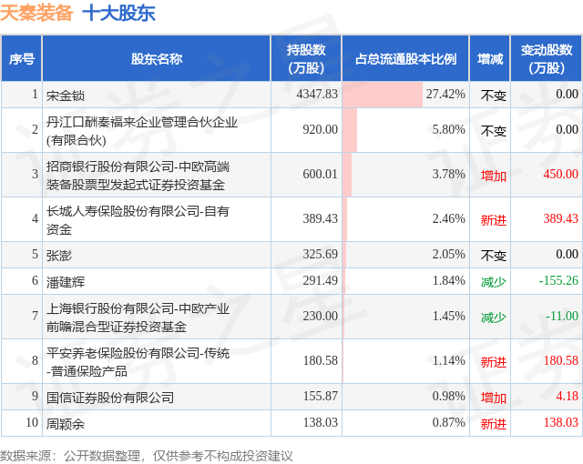 根据天秦装备2025年三季报公布的十大股东详情如下: