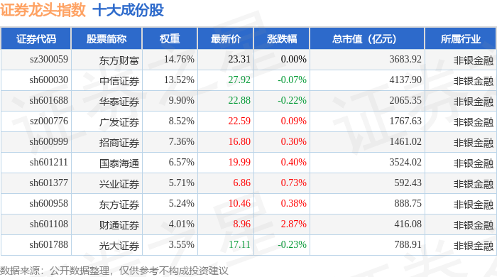资金流向方面,证券龙头(399437)指数成份股当日主力资金净流入合计6.46亿元,游资资金净流出合计2.63亿元,散户资金净流出合计3.84亿元。成份股资金流向详情见下表:
