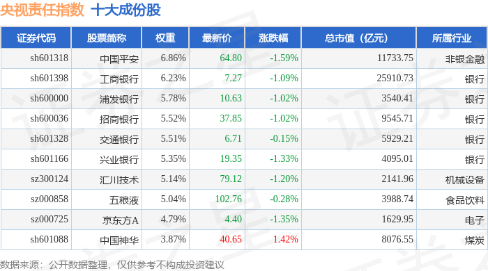 央视责任(399555)指数十大成份股详情如下: