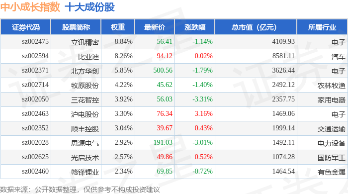 中小成长(399602)指数十大成份股详情如下:
