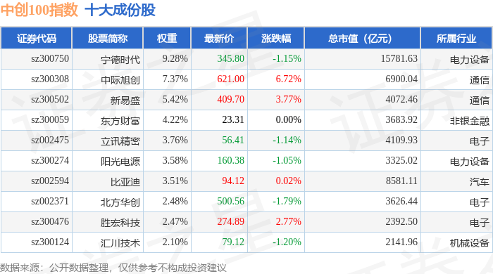中创100(399612)指数十大成份股详情如下: