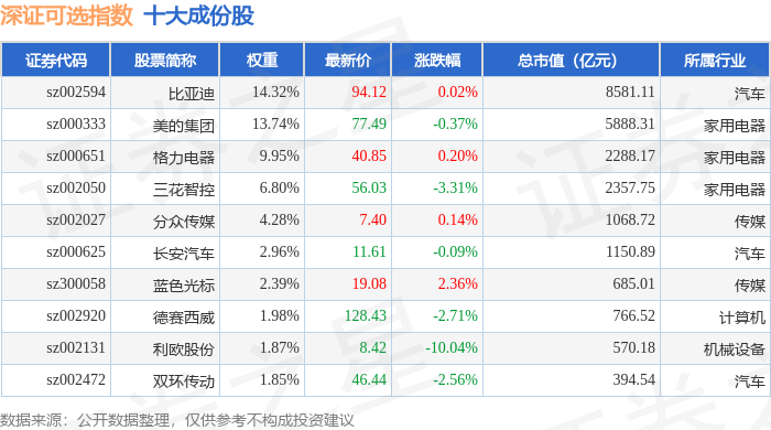 资金流向方面,深证可选(399616)指数成份股当日主力资金净流出合计39.57亿元,游资资金净流入合计2.75亿元,散户资金净流入合计36.82亿元。成份股资金流向详情见下表: