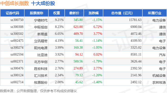 资金流向方面,中创成长(399626)指数成份股当日主力资金净流出合计53.34亿元,游资资金净流出合计27.15亿元,散户资金净流入合计80.49亿元。成份股资金流向详情见下表: