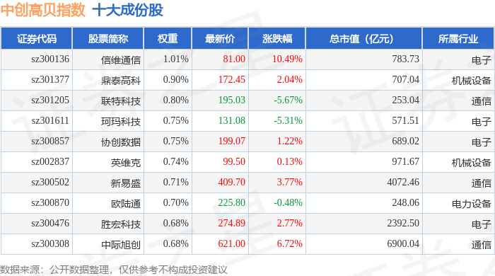 中创高贝(399666)指数十大成份股详情如下: