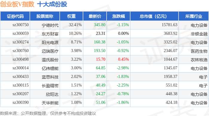 证券之星消息,1月22日,创业板V(399668)指数报收于5177.1点,跌0.56%,成交900.71亿元,换手率2.44%。当日该指数成份股中,上涨的有43家,晶盛机电以6.35%的涨幅领涨,下跌的有56家,飞凯材料以3.73%的跌幅领跌。
