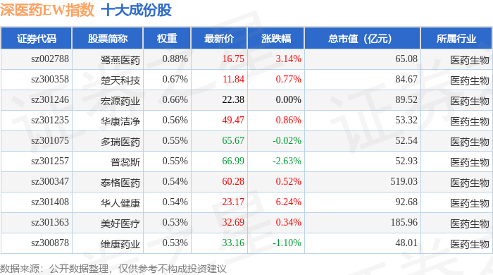 资金流向方面,深医药EW(399676)指数成份股当日主力资金净流出合计13.21亿元,游资资金净流入合计1.74亿元,散户资金净流入合计11.47亿元。成份股资金流向详情见下表: