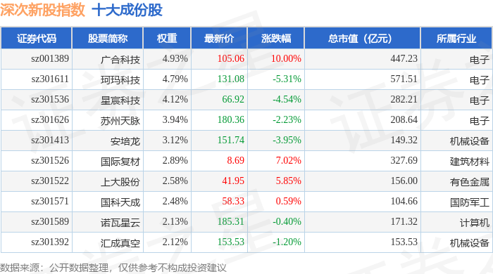 深次新股(399678)指数十大成份股详情如下: