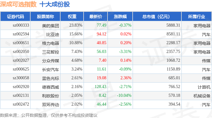深成可选(399683)指数十大成份股详情如下: