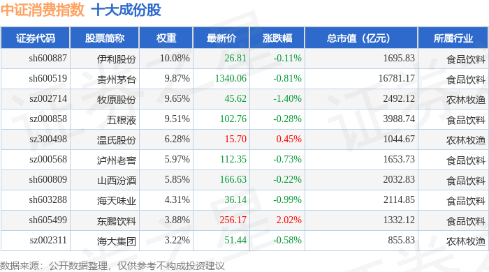 资金流向方面,中证消费(399932)指数成份股当日主力资金净流出合计9.13亿元,游资资金净流入合计4.14亿元,散户资金净流入合计4.99亿元。成份股资金流向详情见下表: