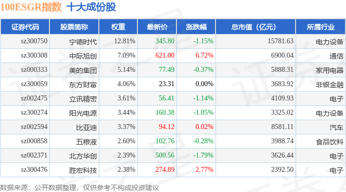 证券之星消息,1月22日,100ESGR(470027)指数报收于8271.21点,涨0.26%,成交2114.49亿元,换手率1.39%。当日该指数成份股中,上涨的有35家,鹏鼎控股以10.0%的涨幅领涨,下跌的有42家,三花智控以3.31%的跌幅领跌。