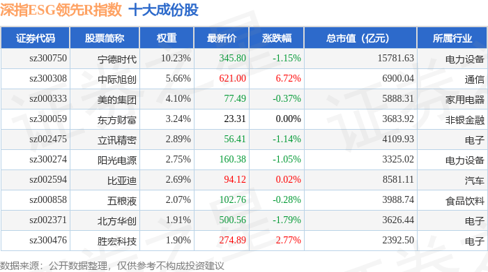 深指ESG领先R(470029)指数十大成份股详情如下: