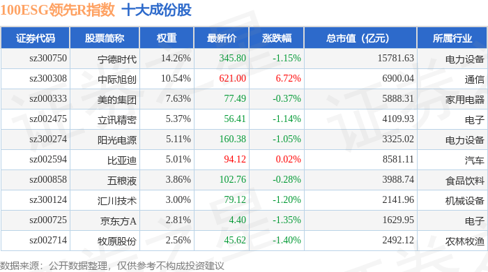 100ESG领先R(470030)指数十大成份股详情如下:
