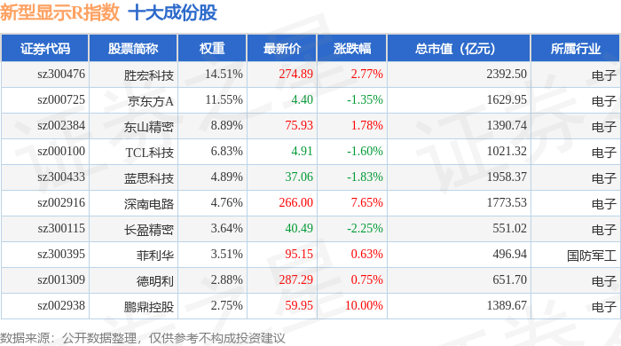 新型显示R(470048)指数十大成份股详情如下: